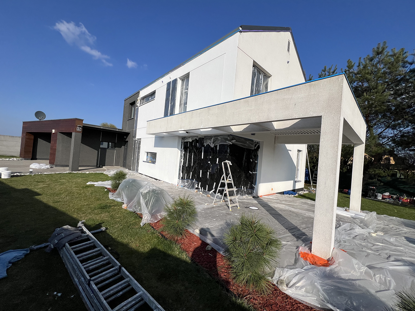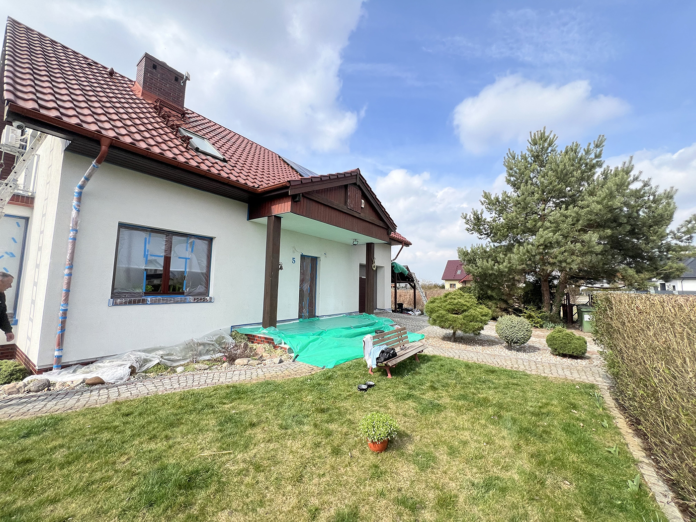 Ogromnie istotne jest także odpowiednie przygotowanie do pracy: warto zwrócić uwagę na warunki panujące za oknem – pogoda powinna być możliwie stała oraz sucha, bez opadów deszczu, śniegu ani gradu, a także bez silnego wiatru. Optymalnie byłoby wykonywać taki zabieg wiosną albo latem, choć oczywiście w chłodniejszych porach roku również będzie to możliwe, z tym że może być nieco bardziej utrudnione. Przed rozpoczęciem malowania konieczne będzie gruntowne oczyszczenie i przygotowanie elewacji – usunięciu zabrudzeń, kurzu, porastających fasadę roślin, mchu, czy innych przedmiotów i elementów, które mogłyby uniemożliwić jednolite i równomierne nakładanie farby.